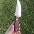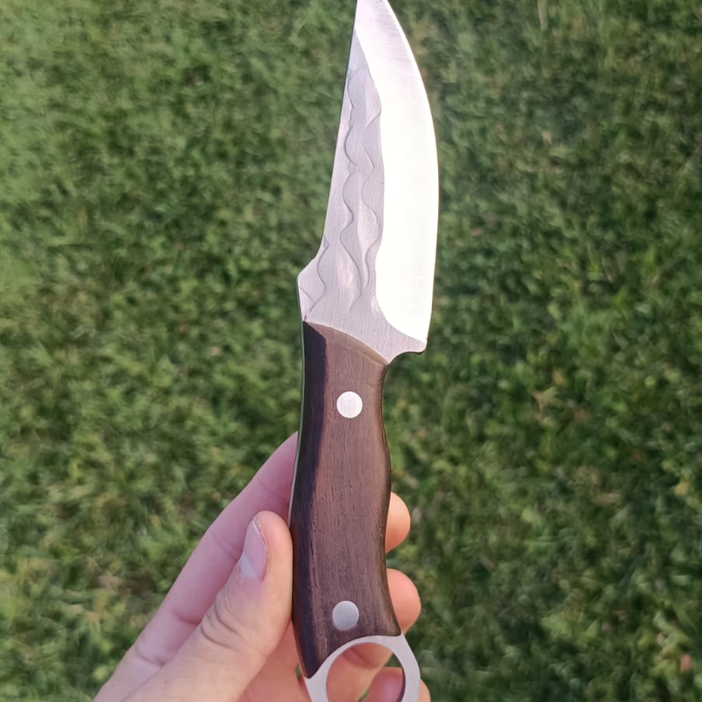 Lâmina forjada em aço inoxidável e cabo de madeira.